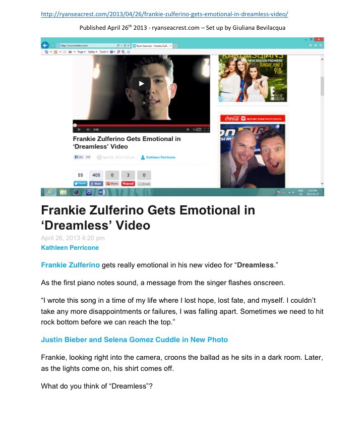 Of course, this would have never been possible without the awesome team at RyanSeacrest.com! They took a chance on Frankie, and we will forever be grateful for it! #ShoutoutToAZ #AndJR #AndKP #AndMM – you guys rock!!