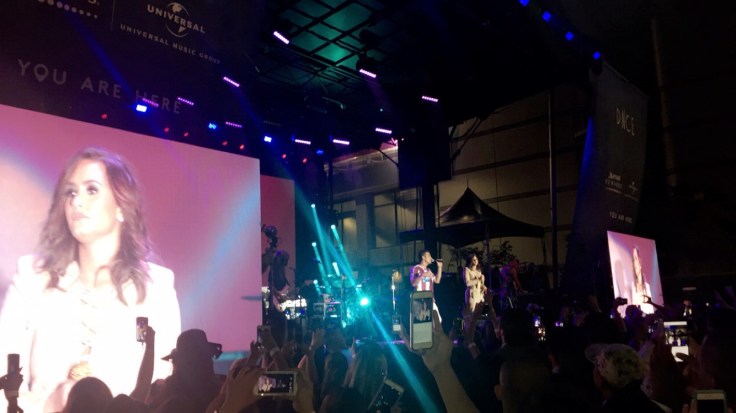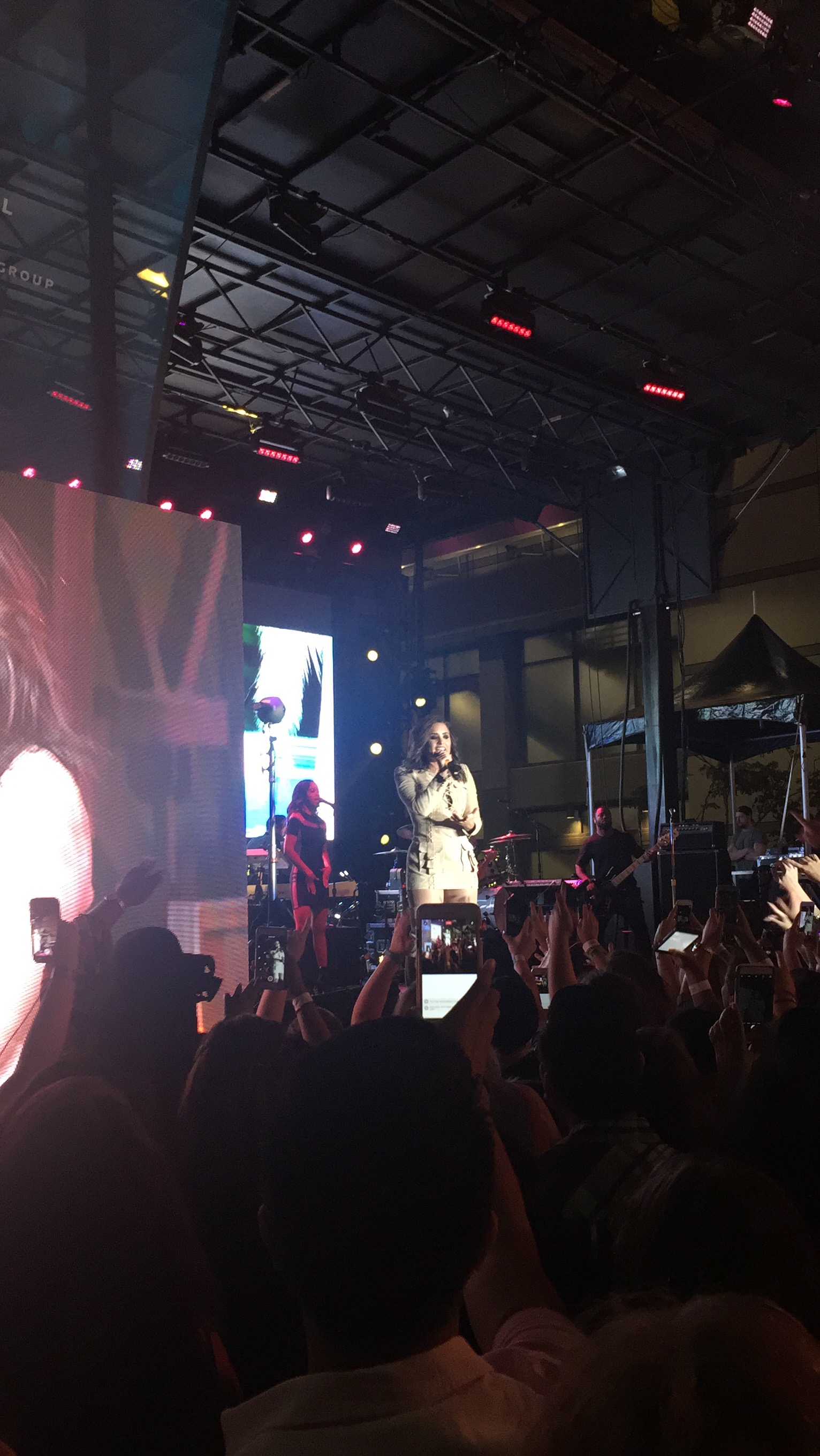 “Excuse me, would you like to actually see the show?” I turned around to find a Marriott employee standing right in back of me, asking the question. “If you turn the corner, you can get in for free. We have extra tickets that we’re giving out.” I quickly made my way to the other side of the gate, was given a wristband and voilà, I WAS IN! I was at the back of the crowd, and before I even had time to take a quick Snapchat, I had security taping me on my shoulder… “would you like to get a closer view?” he asked. Now, you can guess what my answer was. “Follow me,” he said. I followed Mr. Security Guard right up to the front, where I was able to enjoy Demi Lovato’s incredible voice and performance for 45 minutes. DNCE even came out to sing a duet of their hit single Toothbrush.